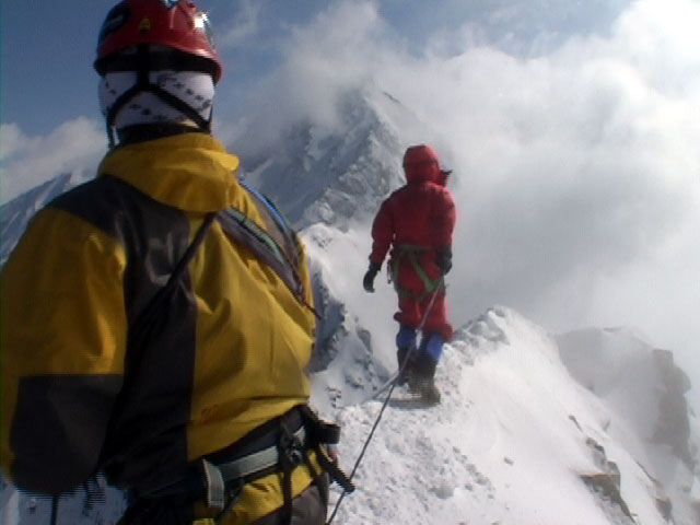 翌日、天狗の頭に到達したところで、それから先へ進むことを断念。天狗の頭から先の新雪のナイフリッジと天狗のコルへの降りはびびりまくって降りることはできませんでした。また、その先のジャンダルムへの細尾根も新雪でナイフリッジの上、両側は凍り付いています。また、セッピも発達しているところが多く、あまりに神々し過ぎて人知の及ぶところではないような感じでした。すべてのパーティがここで引き返していました。
